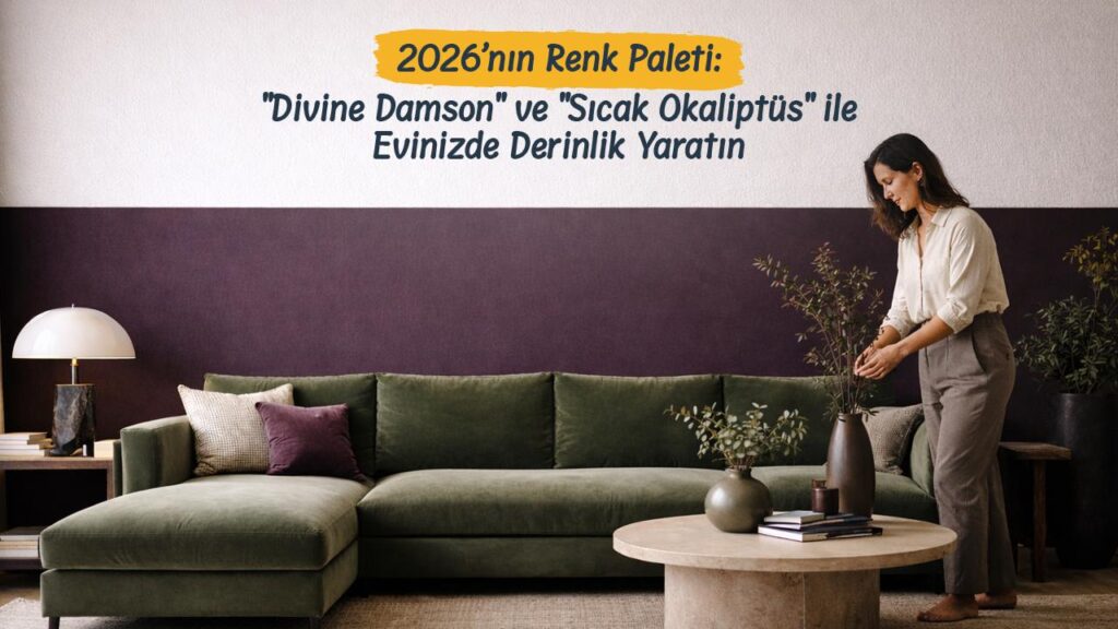 2026 dekorasyon trendleri içinde öne çıkan iki güçlü ton var: Divine Damson (derin, sofistike bir mürdüm-mor) ve Sıcak Okaliptüs (doğadan ilham alan, sıcak alt tonlu yumuşak bir yeşil). Bu iki rengi birlikte düşünmek, yalnızca “güzel görünen” bir dekorasyon değil; aynı zamanda evin atmosferini, ışığını ve hacim algısını değiştiren bir renk stratejisi kurmak anlamına gelir.