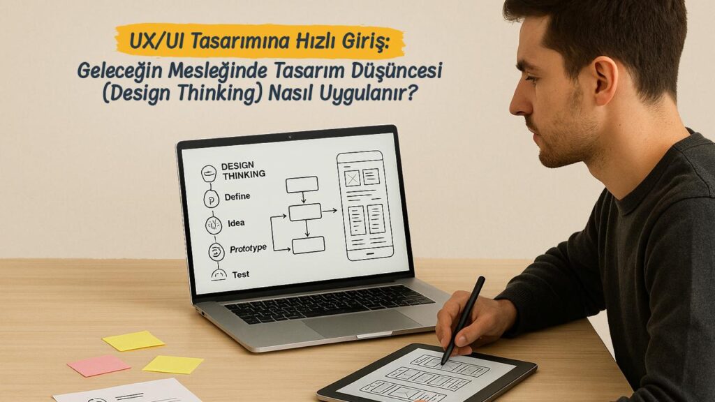 Tasarım dünyasında en sık duyulan kavramlardan biri olan Design Thinking, kullanıcı ihtiyaçlarını keskin bir şekilde anlayarak yaratıcı, uygulanabilir ve etkili çözümler üretme metodudur. Bu yaklaşım; empati kurma, problemi tanımlama, fikir üretme, prototip oluşturma ve test etme gibi aşamalardan oluşur. Özellikle UX/UI tasarım projelerinde bu aşamalar, gençlerin bir dijital ürünü hem işlevsel hem de duygusal açıdan daha güçlü hale getirmesini sağlar.